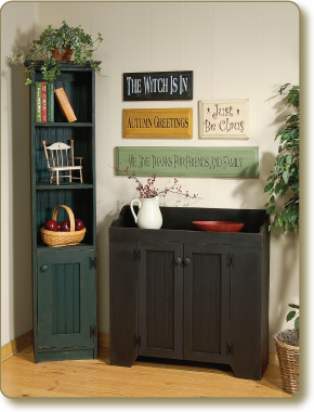We make quality wood cupboards, cabinets, trash bins, recycle bins, and dry sinks. Put a cupboard or cabinet in your bathroom, or try the dry sink in a bedroom for great cottage-style decor with storage. Our trash bins work great as a clothes hamper too!